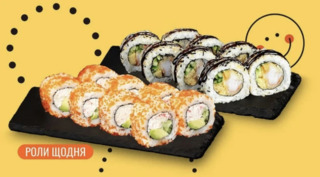 - Комбо Чізі чіз (550 г) - ніжний рол з куркою та запечений із крабовим міксом зі знижкою –50%. Теплий, ситний варіант для любителів запечених ролів із хрусткою скоринкою.