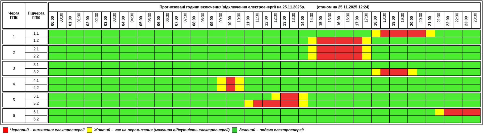 Публікуємо графік, який відомий станом на 12:20 25 листопада: