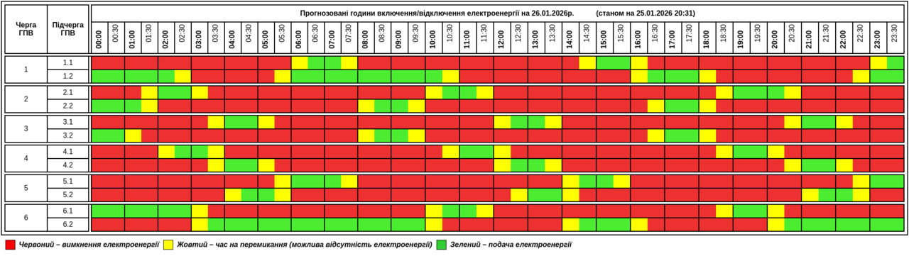 Публікуємо графік, який відомий станом вечір 25 січня: