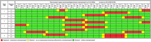 Публікуємо графік, який відомий станом на вечір 30 грудня: