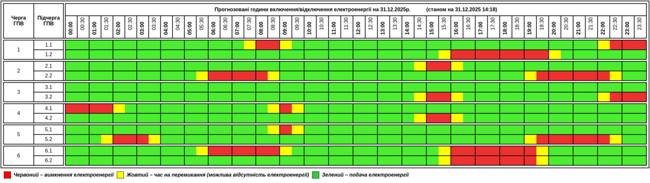 Публікуємо графік, який відомий станом на вечір 14:18: