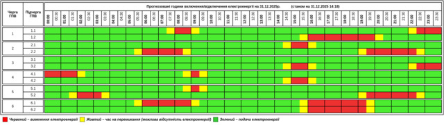 Як вимикатимуть світло на Тернопільщині 31 грудня: графік (оновлено)