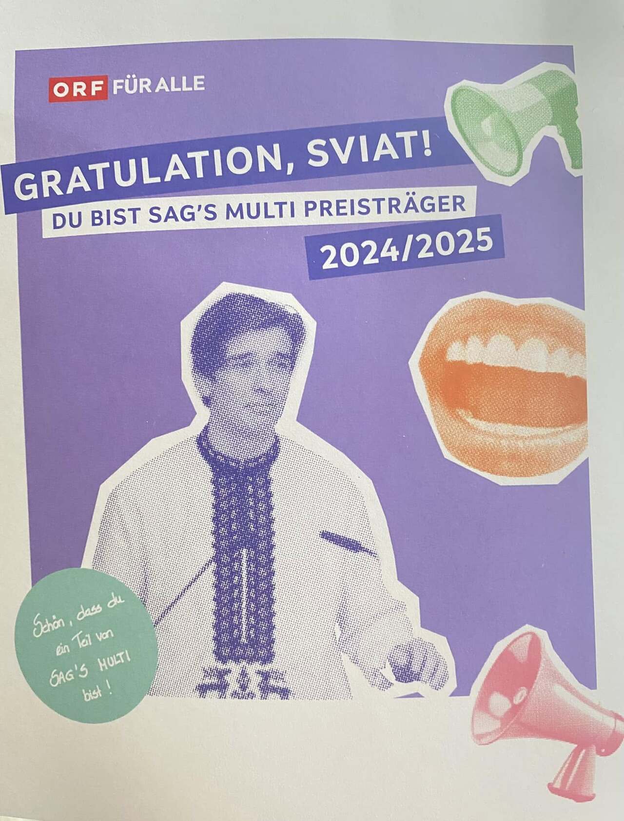 Чесно кажучи, я не очікувала, що такий прямолінійний і емоційний текст отримає високу оцінку, — написала мама Святослава. — Та я безмежно пишаюсь ним: за три роки він опанував німецьку мову настільки, що створює вірші, має чітку громадянську позицію і не боїться говорити правду.