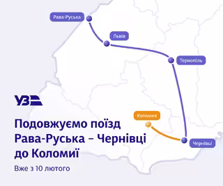 З 10 лютого 2025 року поїзд №865/866 Рава-Руська – Чернівці курсуватиме з продовженням маршруту до Коломиї. Це рішення покращить транспортне сполучення та надасть нові можливості для зручних пересадок, повідомили у пресслужбі Укрзалізниці.