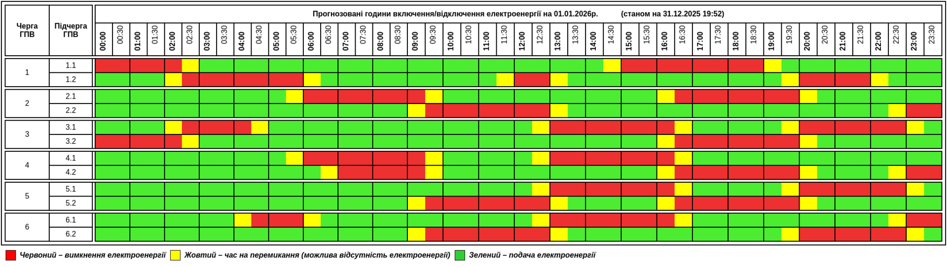 Публікуємо графік, який відомий станом на вечір 31 грудня:
