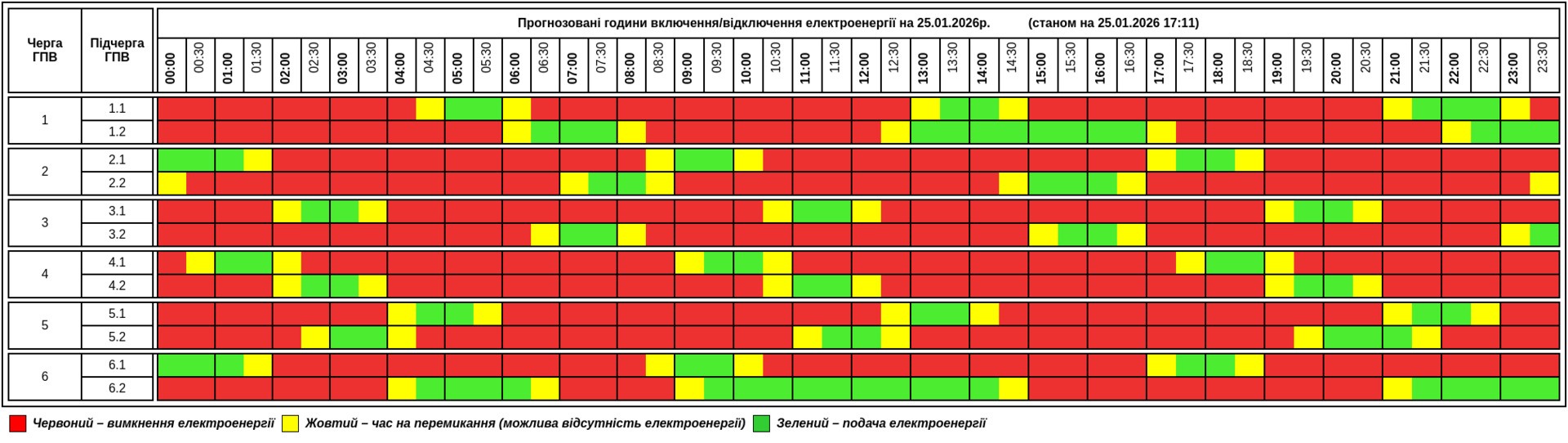 Публікуємо графік, який відомий станом 25 січня 17:11: