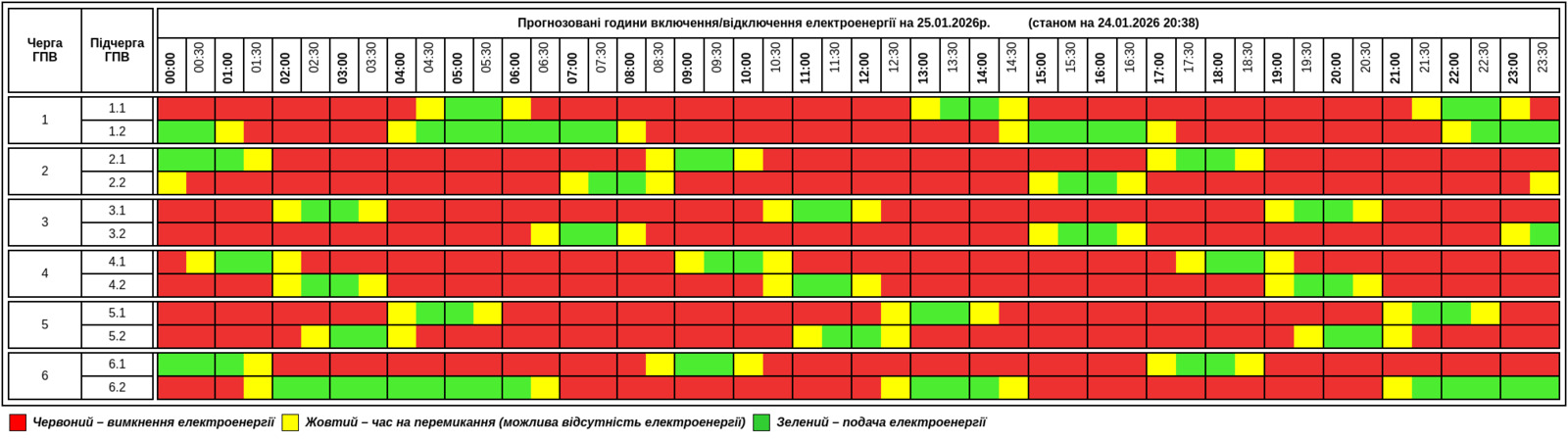 Публікуємо графік, який відомий станом на вечір 24 січня: