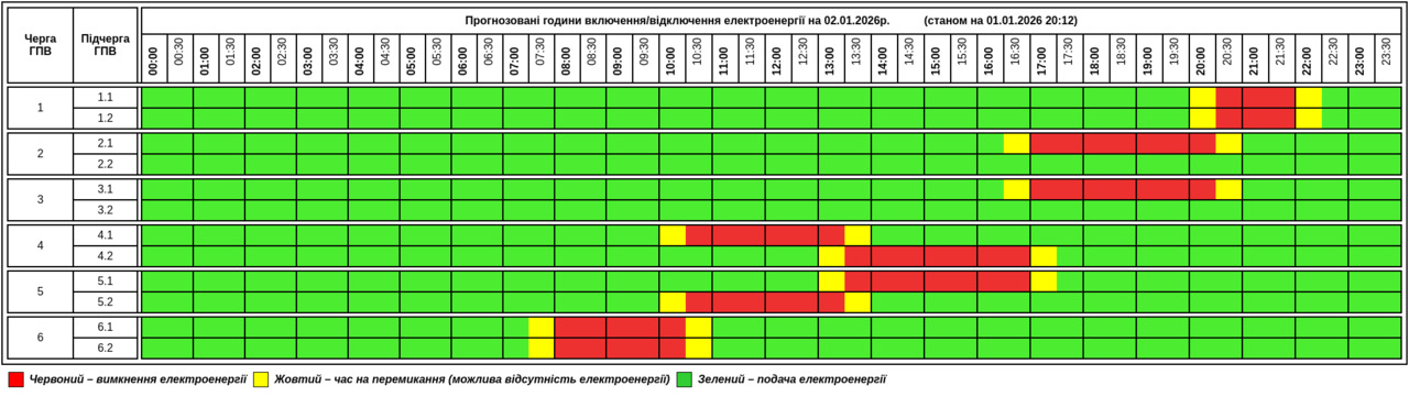 Публікуємо графік, який відомий станом на вечір 1 січня: