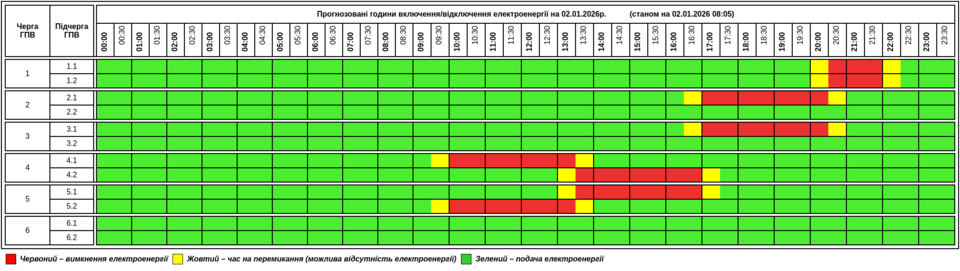 Публікуємо графік, який відомий станом на 8:05: