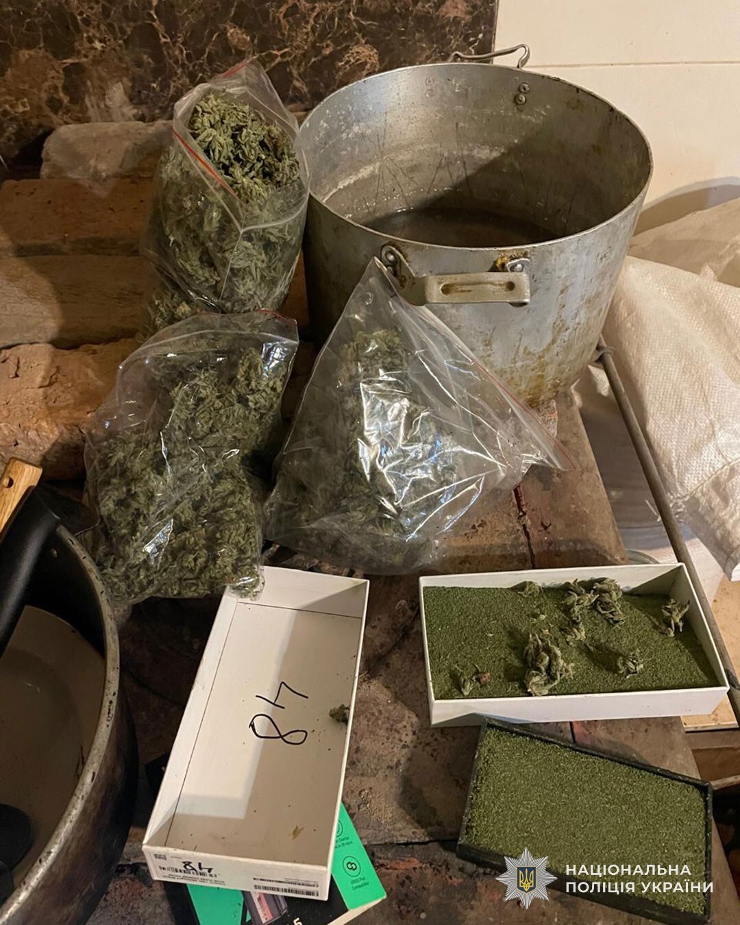 Під час санкціонованого обшуку у фігуранта вилучили майже пів кілограма подрібненої речовини зеленого кольору та суцвіття рослин коноплі. Речові докази направили на експертизу.