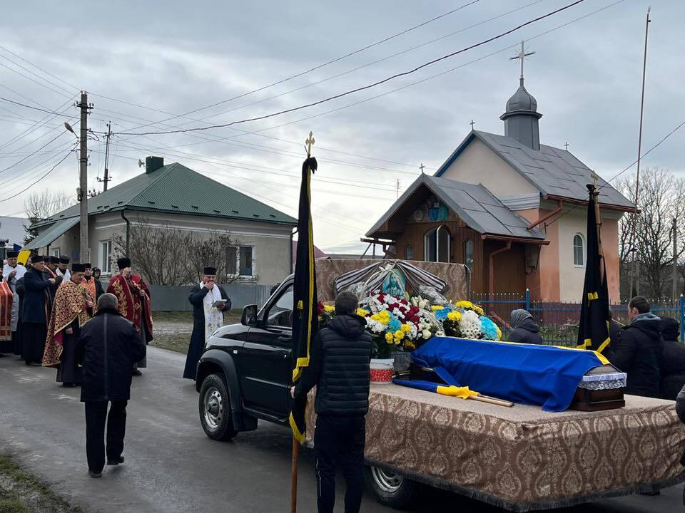 Прощання розпочалося на подвір’ї рідного дому в селі Угринів, де відбулася відправа, під час якої рідні, сусіди та знайомі мали змогу помолитися за спокій його душі. Після цього кортеж вирушив до церкви Покрови Пресвятої Богородиці, де громада зібралася, щоб вшанувати пам’ять захисника та підтримати його родину.