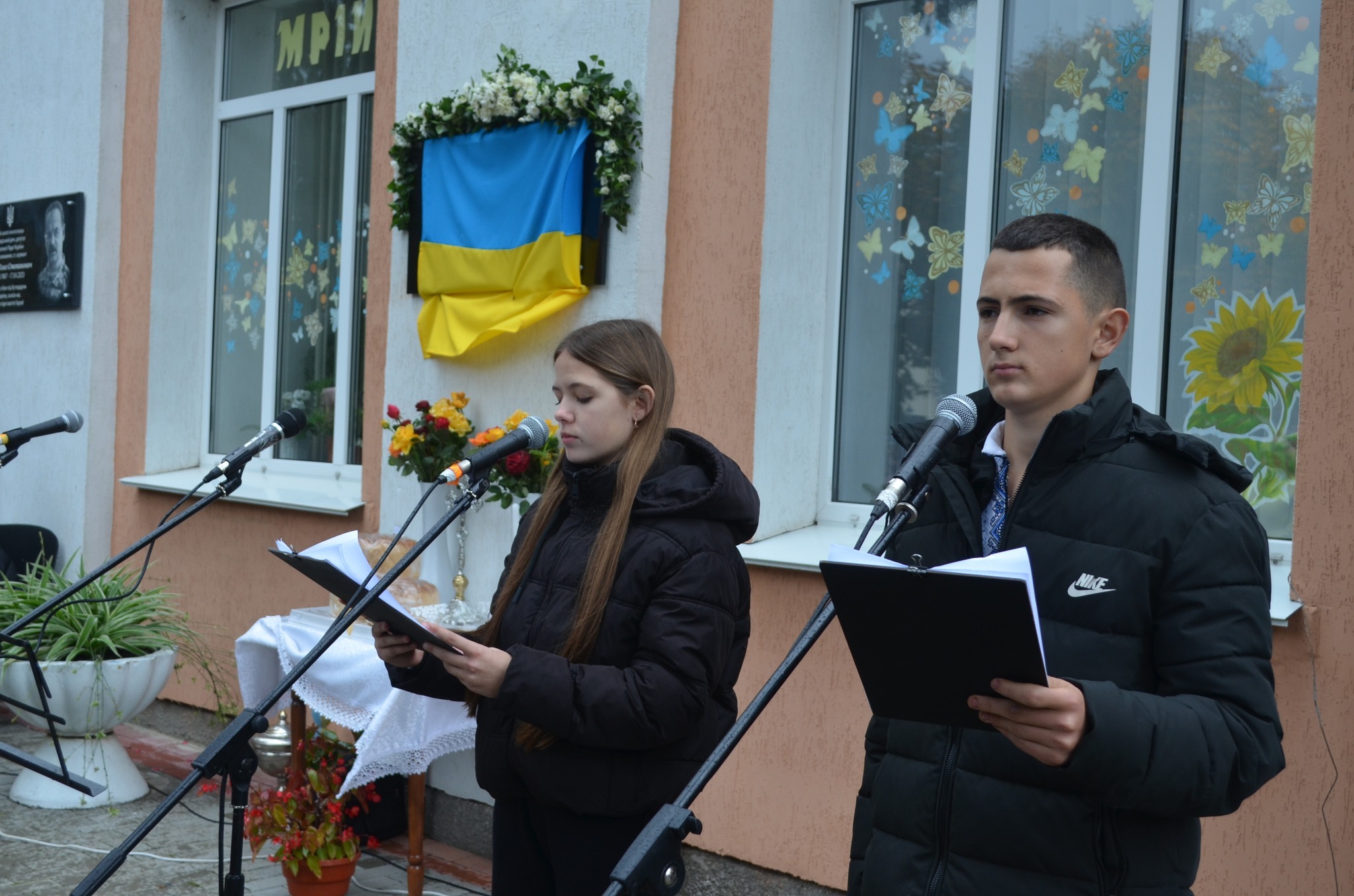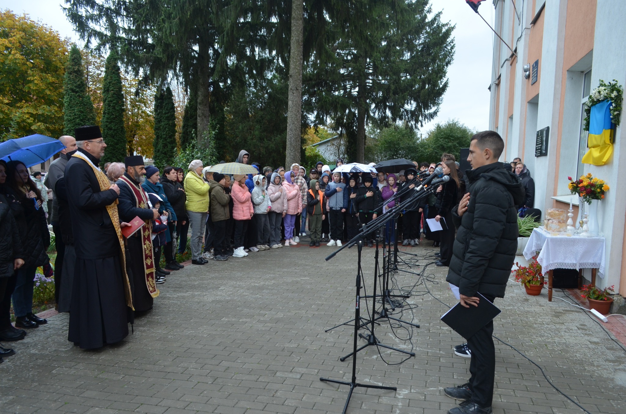 На урочистості з нагоди встановлення пам’ятного знаку зійшлися родичі Героя, друзі, голова громади разом із педагогічним колективом, учнями та ученицями школи, а також жителі села і громади.