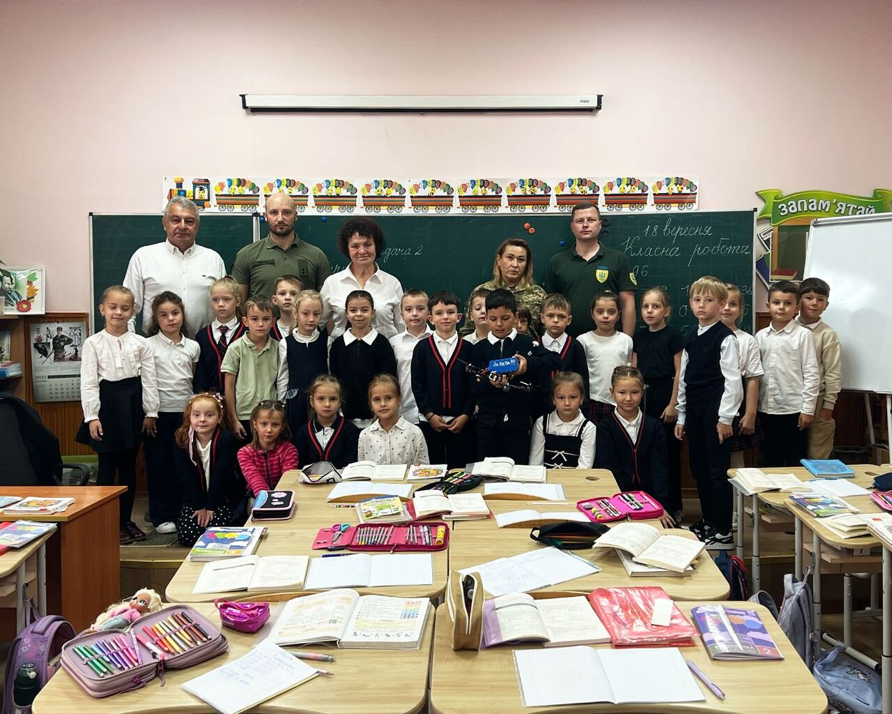 Згодом волонтери здійснили мрію хлопця: придбали безпілотник і привезли його до школи. Саме там Олексій залишив на «пташці» напис у пам’ять про свого батька-Героя.