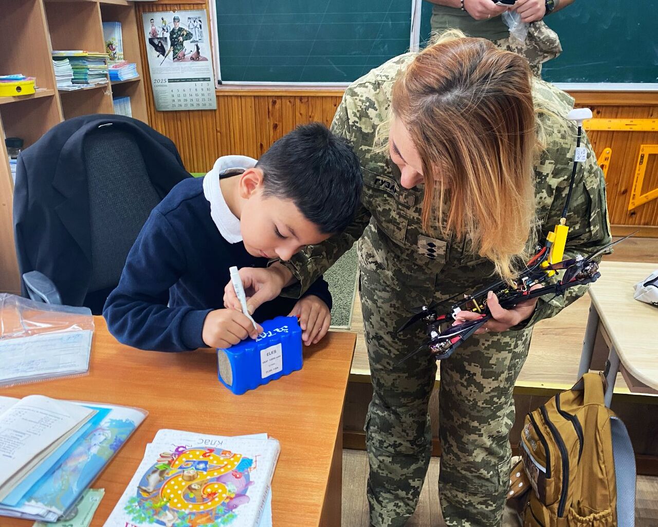 Школяр передав військовим бригади ТрО безпілотник із написом «За тата!»