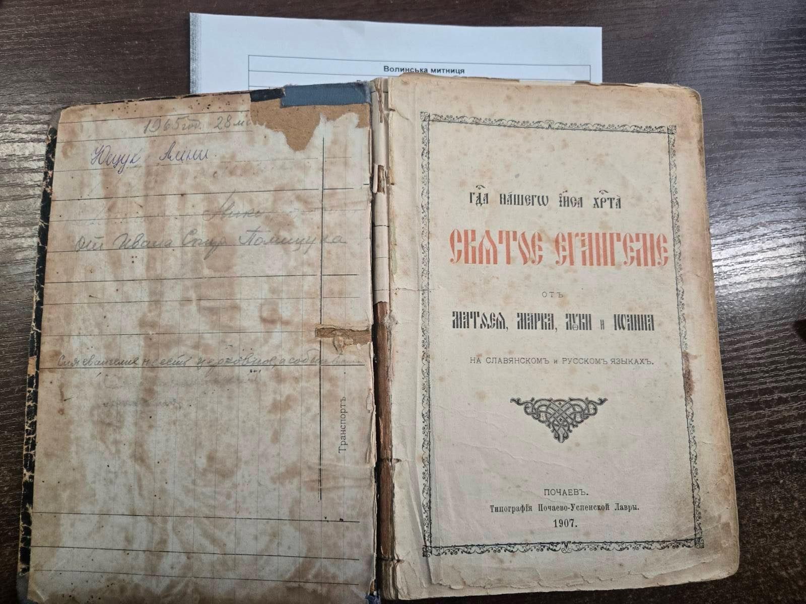 На постійне зберігання до фондів Кременецько-Почаївського державного історико-архітектурного заповідника передали книгу «Святоє Євангеліє Господа нашого Іісуса Христа от Матвея, Марка, Луки, Іоанна», яку вилучили при перетині державного кордону Волинською митницею. Про це повідомили у пресслужбі заповідника.