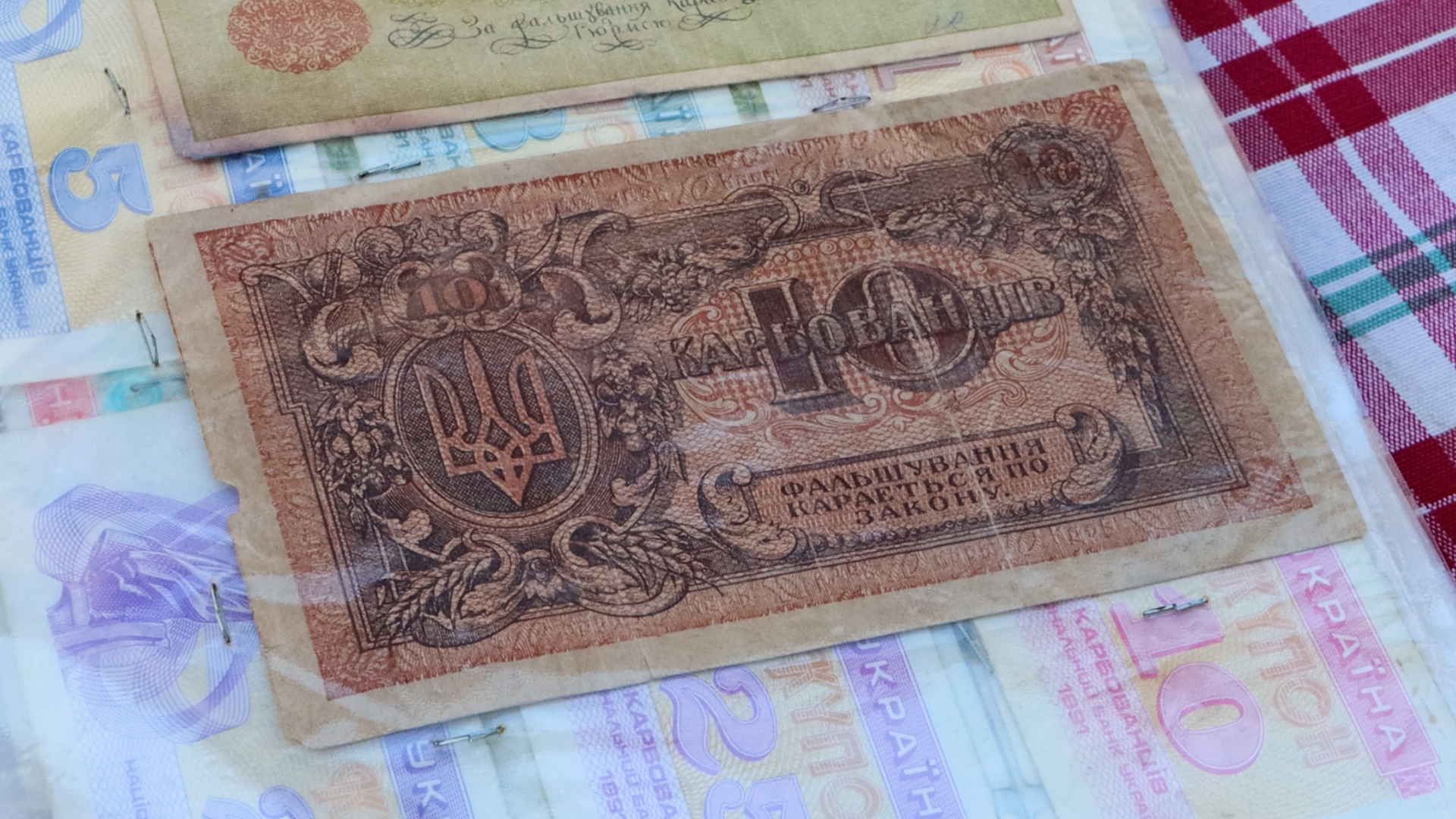 Я тільки почав збирати монети, до мого діда приїхав колега з Теребовлі, він мурував п'єци, був спецом у тій справі. А я малий перебирав монети. Він каже: “Володя, прийде час і я дам тобі одну купюру”. Не знаю скільки років пройшло – але дуже багато. Точно після 1991-го, вже Україна стала вільною. Цей чоловік захворів, і дідо попросив відвези його в Теребовлю, до Василька, який тоді вже був при смерті. Ми приїхали до нього, дідо з ним говорив, а я собі пішов з його внуками спілкувався. Потім теж підійшов до нього. Він каже: ”Володя, візьми там в тому ряді от таку книжку, я тобі колись щось обіцяв”. А я вже й забув. Листаю ту книжку і бачу купюру. Він каже: “Я боявся дати її тобі при союзі тому, що на ній зображений тризуб”, – пригадує Володимир Проць.